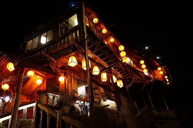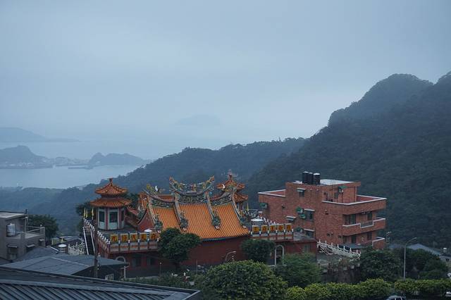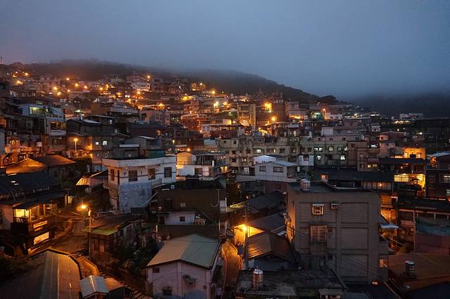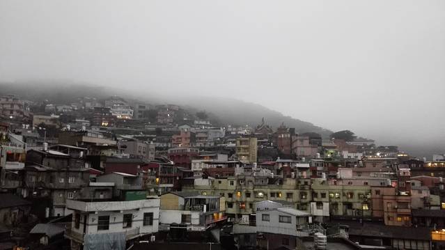 从瑞芳打车到九份,新台币180元(统一搭车点,统一价),天已经快黑了,这是傍晚的九份。
