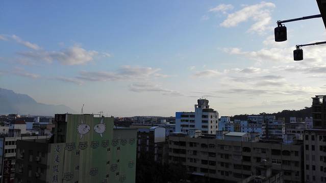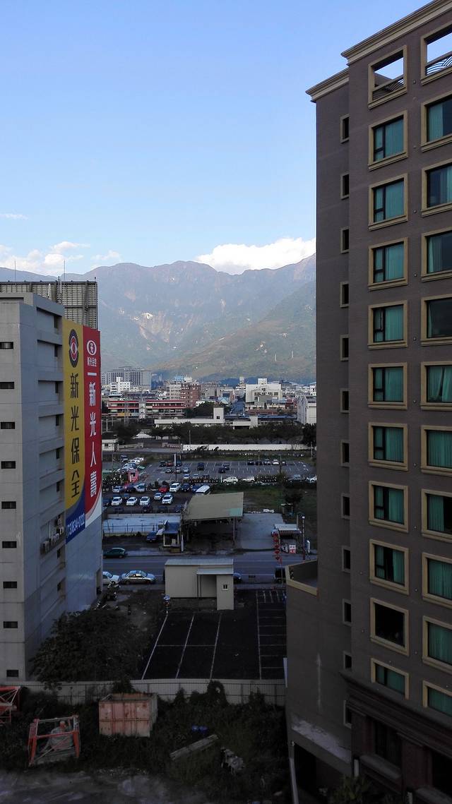 从酒店窗口看出去的景色,远处就是纵贯台湾岛的中央山脉的部分。