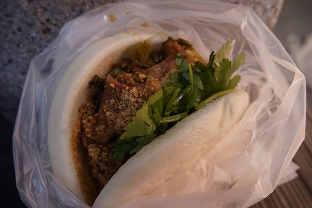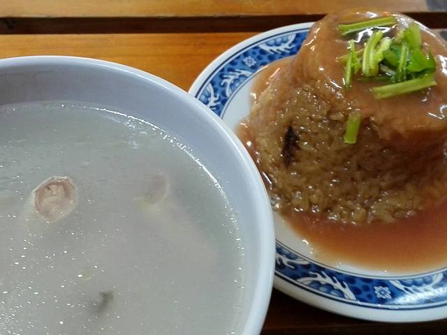 有钱了,我们给小宝又吃了牛排,宝爸爸妈吃了煎饺,香而不饱,宝爸继续在路边找了个小摊吃晚饭,四神汤和米糕,味道不错。