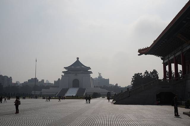 这两个建筑其实是音乐厅和戏剧院,跟中正纪念堂共处一个大广场的周围,这个广场原名大中至正广场,现在已更名为自由广场。。