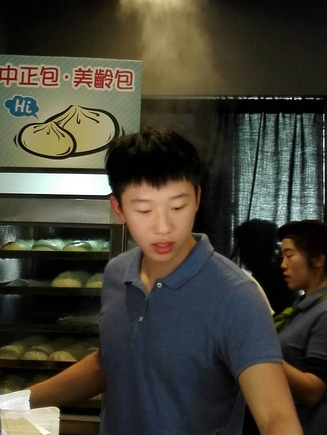 小卖部里面的小帅哥。亮点在他头上的招牌,中正包是肉包,美龄包是素包。。。
