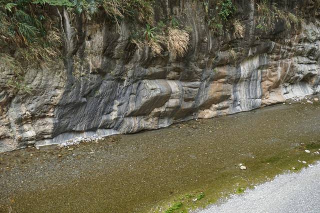 太鲁阁的岩石都是大理石,欣赏美丽的石纹是一大乐趣。