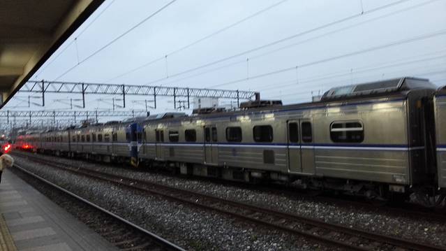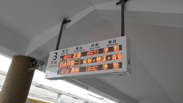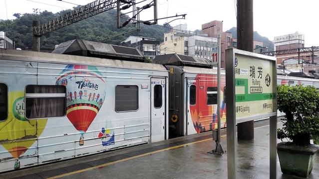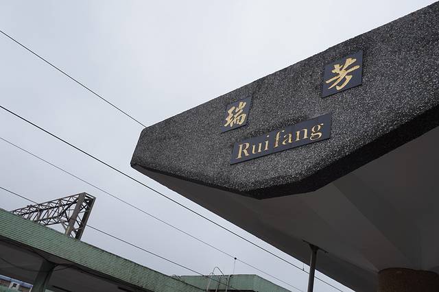 从台北车站坐了一个自强号到瑞芳站,三十六分钟,据邻座的女士说这趟车是环行台湾的,看着车体多鲜艳。
