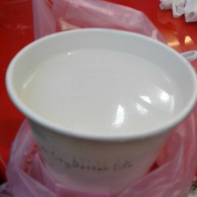 坐下来吃了一碗杏仁茶加油条。好香!而且这家好多拥趸,坐满了人。