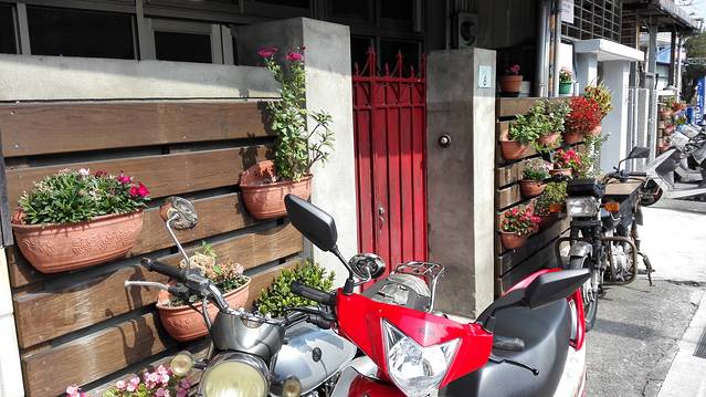 往士林官邸路上的街景。我们很喜欢这种种花养花有爱的感觉。