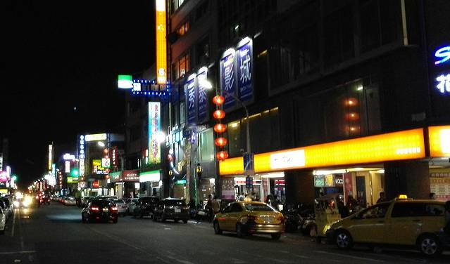 我们住花莲车站附近,这是夜晚的街道。就在宝爸照这张照片的时候,有一个超市的职员MM下班出来,在门口唱了一个你是我的小苹果,然后骑上机车走了...