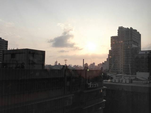这是从酒店窗户看出去的台北市区,夕阳下暖色中显出有点旧。台北,你好,我们来了。