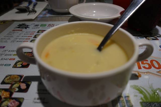 小宝饿了,在捷运出口拿了个小广告,按图索骥,直奔牛扒店。玉米浓汤自助取用。