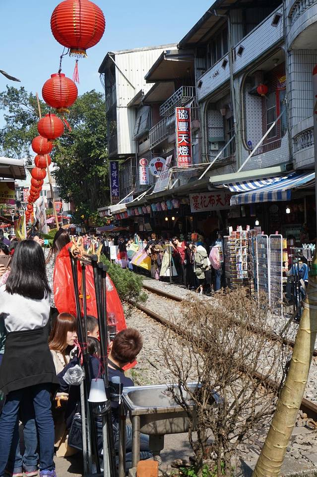 十分车站的特点是铁道两边的市场:没有火车通行的时候,买家和卖家在铁轨上讨价还价交易、或在天灯上写祝福语,或放天灯,总之其乐融融;火车徐徐开来的时候,大家不慌不忙退到铁轨两边的街道,大家都相安无事