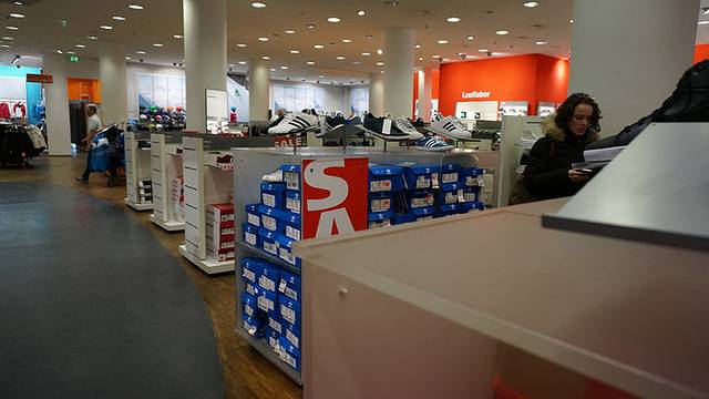 小吃广场和商业区是一体的,德国打折除了圣诞还有冬季夏季两个,1月份也是重要的打折季,非常有诚意,价格不错。在莱比锡斩获了三双鞋,一件黑色的毛呢大衣。