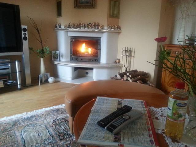 朋友家的壁炉又点了起来,很温暖。看到桌子上那瓶东西了吗?我的最爱,带气不含糖的苹果汁,酸味的,有苹果香,很好喝!