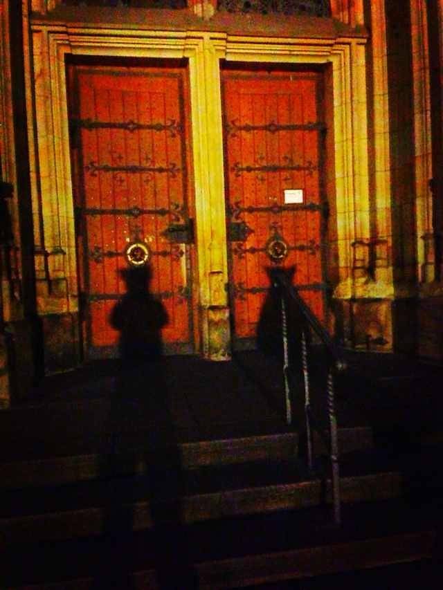 俩人闲的没事了,开始玩儿起来,圣托马斯教堂墙上的怪兽^&^