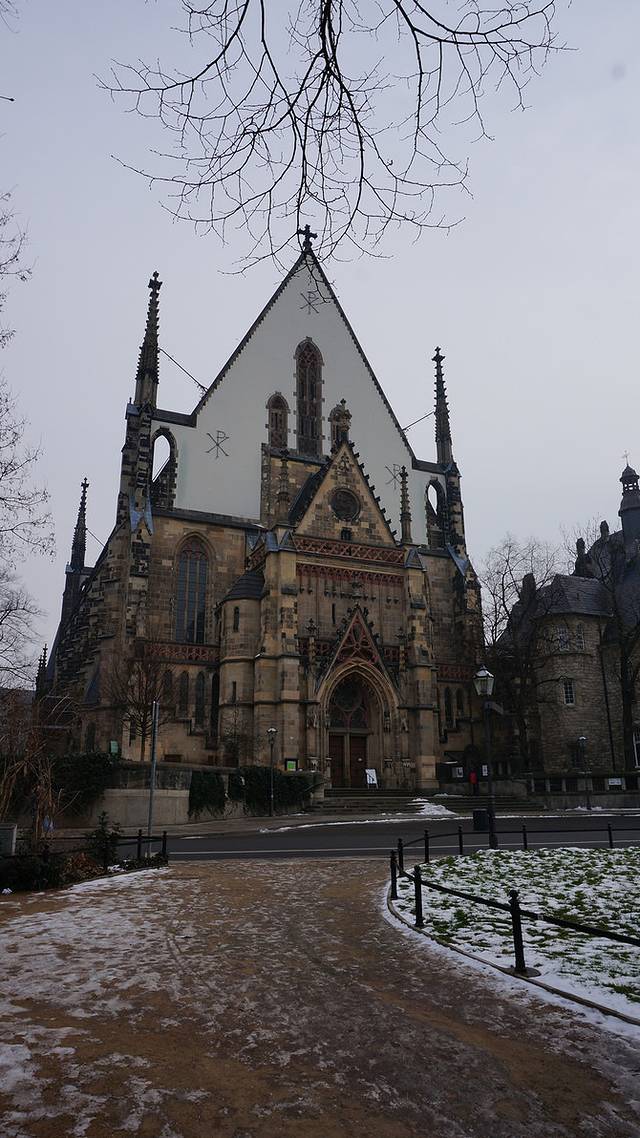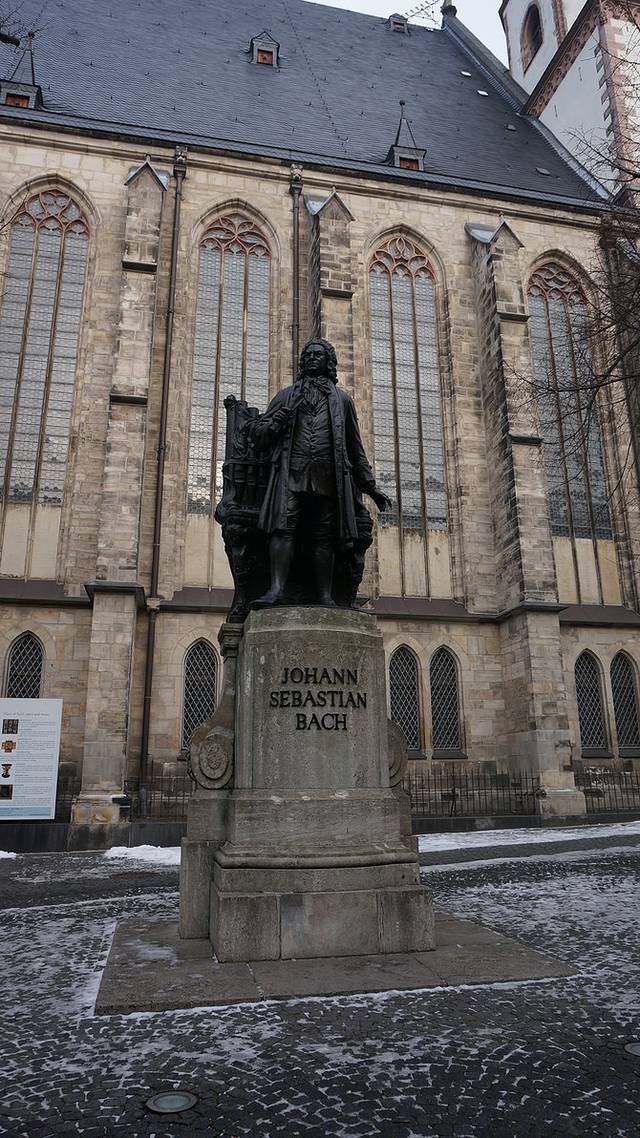 今天就是莱比锡的市中心一日游了,圣托马斯教堂就在市中心,巴赫当年一直在教堂工作,一直到去世,所以圣托马斯教堂前有巴赫的塑像,同时教堂也会演奏巴赫的作品。