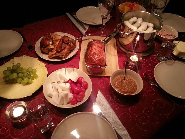 晚上去朋友的妹妹家的家宴,朋友的妹夫是个美术老师,所以家里布置的很舒服。我发现德国人家晚上特别喜欢点蜡烛,我们去过的家庭无论是大家庭,二人世界,还是单身汉,都有这个习惯