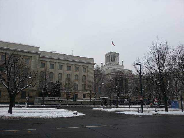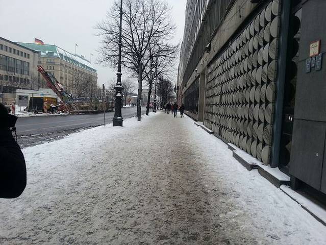 由于在柏林看演出,我在德国的一个喜欢芭蕾的朋友也专程赶过来和我会合。所以第二天的行程就是她陪着我在城里转。因为今天会去好几个不同的地方,我们买了天票,地铁、城铁、汽车、有轨电车都通用,应该是7欧左右一张票。上午买完芭蕾用品,就去一家泰国餐厅吃炒河粉,味道比我想象的好,柏林可能是因为各地方的人都有,所以想吃到哪里的食物都很容易。午饭之后我们就顺着菩提树下大街走到勃兰登堡门。虽然天气不好,但是游客还是不少。