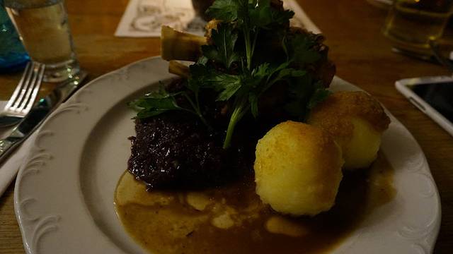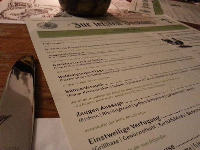 逛到晚上,在WMF买了一堆刀刀叉叉之后,柏林的朋友又约我们吃巴伐利亚餐 没办法,盛情难却,吃吧!这次是家老店,价格会高一些,人均大概要20欧左右。而且餐厅需要预定。