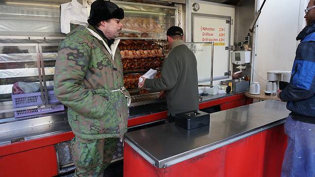 完成了前两天的“任务”我基本就开始了懒散状态,早上基本到了10点半才起来,起床之后就跑到亚历山大广场闲逛,Alexanderplatz是比较成熟的购物商圈,地铁下来之后我就开始各种路边摊觅食。到了这边千万别高估自己的肚子哦,每一样东西看着量不大,但是可能因为蛋白质的含量不低,所以很快就觉得撑了。不管你想吃热狗,咖喱肠,Doner(土耳其卷饼),炸鱼薯条,还是没经过油炸烘烤的面包夹肉,应有尽有,均价也都在3欧左右。下了地铁我就走不动路了,东一口西一口的吃饱了。