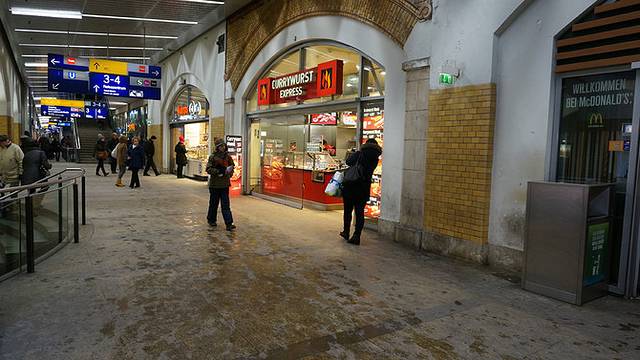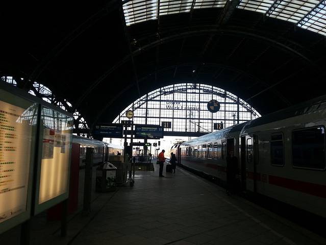 这天的计划是去莱比锡,早上起来收拾好check out我们就拖着箱子去了中央火车站。其实中央火车站真是挺大的,逛街,吃东西,休息都很适合。我们看了一下时刻表,最近时间的车是1点左右。我们就从从容容的吃了饭,再买买明信片。