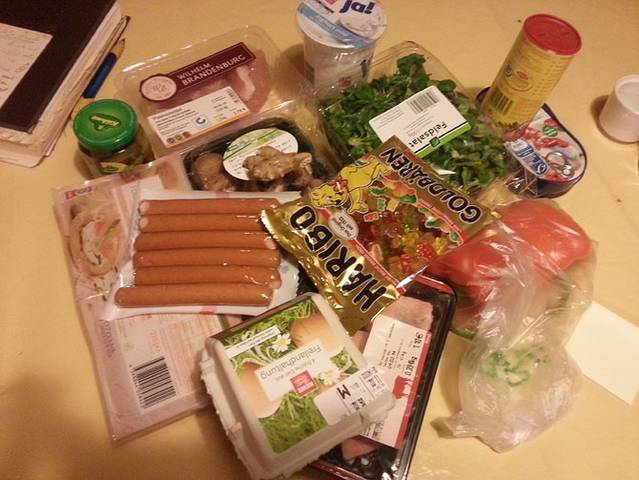 唱诗结束之后我们又去超市买了菜,今天要在民宿里自己做饭。买回来一堆东西,27欧!和北京物价差不多。