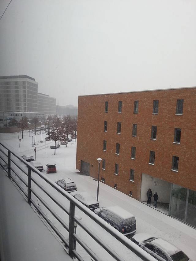 这次过去正好赶上寒流,下大雪还很冷。估计还是要给其他让路,到了柏林进站之前停了很久。