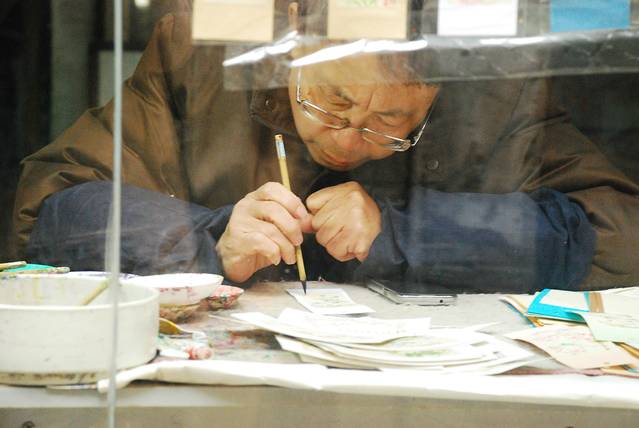 认真工作的老人。