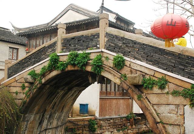 古朴的石桥有了植物的点缀,顿时充满生机起来。