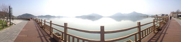 其实不是整个东钱湖啦,只是一个在游客服务中心的木板桥,可以看到部分湖景~