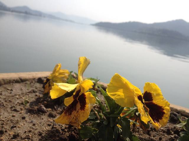 湖边木板桥上花坛种的蝴蝶花,虽然蔫了但别有一番韵味吧