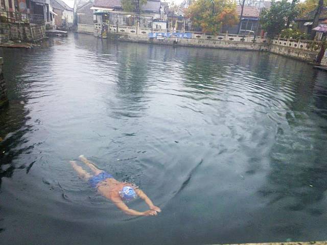 我们不要较真于在那里游泳妥不妥,这种保护方法得当与否,总之, 可以游泳的濯缨泉已经是济南 一道独特的风景,春夏秋冬,只要你愿意,王府池子欢迎你来游泳~记得脱衣服带泳帽~我们去那天降温下雨,好冷滴,果然就看见有人在里面游泳,听中场休息的大爷说,基本每天都有来游的,冬天下雪也不间断,我内心希望济南市政府不要改变这个百姓福利