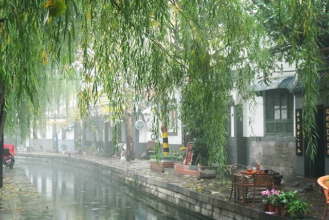 如网上说的真是i很短的一条街,虽然能看出好多家都是后来收拾过门脸的,但是组合在一起后,感觉也算和谐,现在的街景是:依然住在那的老住户,几家很文艺的小店,有水有小桥有柳树~适合白天去转,如果再下点小雨,雾蒙蒙的感觉会更好~(我们是晴天雨天都走了一遍,所以说我们逛的的相当不着急~)天好的时候,几家卖茶、做饭的,会在水边摆上几张桌子,喜欢的可以坐在外面,整体较安静,可以考虑在那歇歇脚