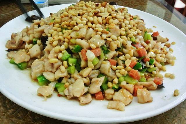 松仁和没有刺的鱼肉丁,清淡炒菜口味,不错~我终于可以不用吃松仁玉米了