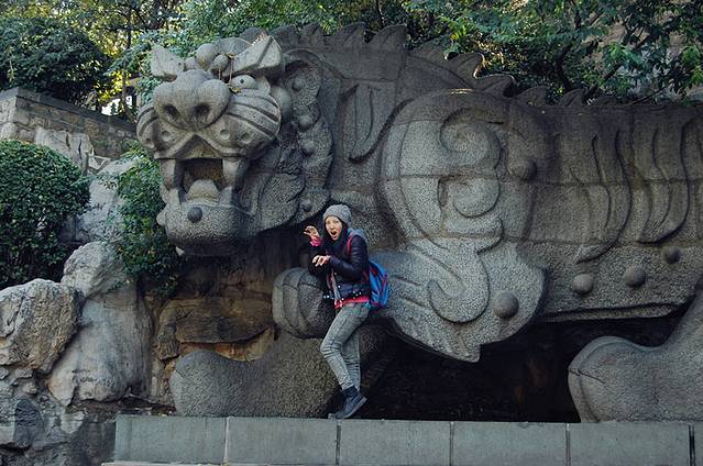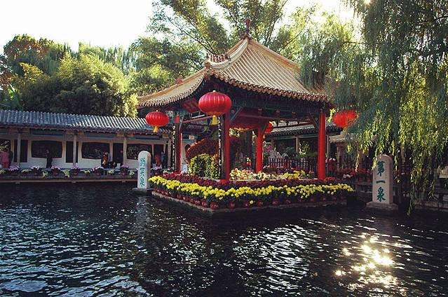 五龙潭公园,黑虎泉,九女泉————个人感觉一般,没有觉得什么非常特别的,概述一下,五龙潭公园5元,里面的水比较蓝..或者说比较绿..怎么说呢,我是有色弱么。。总之就是水清清,鱼多,最好的消遣活动是3元一包的鱼食,喂鱼~喂鱼~喂鱼~里面有秦琼纪念祠; 黑虎泉、九女泉免票,具体位置记不清了,就在大马路的下面,一个不小心会走过,它俩的位置基本就是面对面,一起也就看了,这两个都是拿着水桶和瓶子就可以排队接泉水(泉水耶~泡茶一定很香~)我自己感觉我去黑虎泉是看老虎的。。因为我属虎。。不看泉水我看石头老虎不行麽?!~
