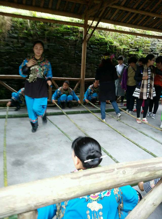 苗族的竹竿舞!每个人都可以去体验!旁边有人教的,体胖身圆的曾老大放弃~~~🙅