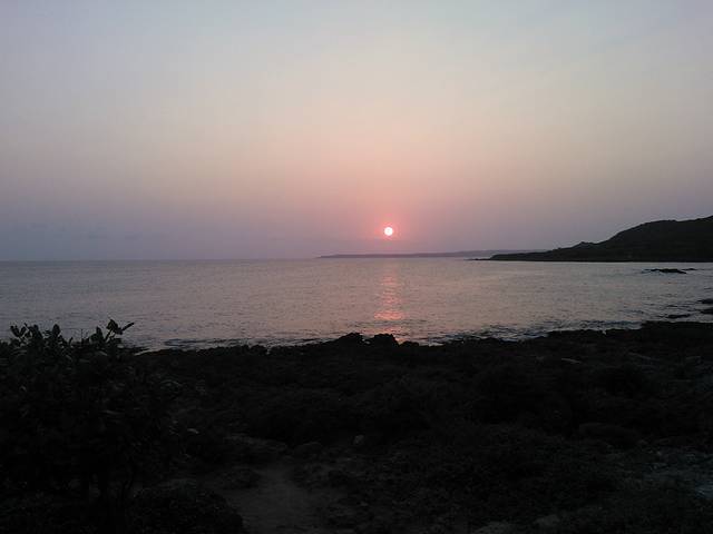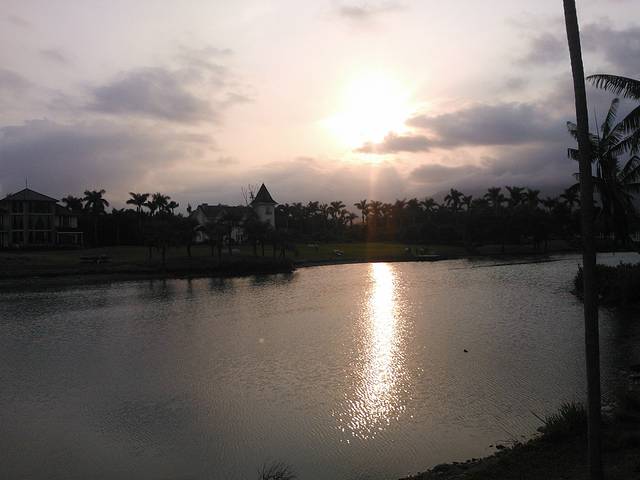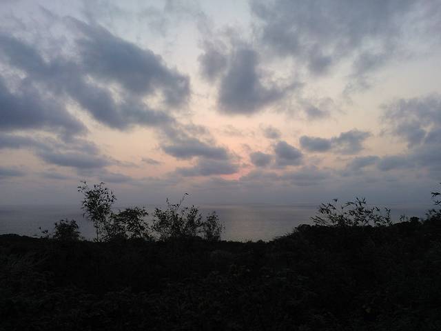 到达“枋寮小站”,遇上有出租车司机招徕拼车,每位220NT,一听蛮划算(公车也得要184NT),五人一车拉了就走(台湾的是六人座个),经过小小而简单的枋寮艺术村,近一小时到达垦丁“船帆石”景点处的“垦丁蓝海旅店”,远眺夕阳下的“船帆石”。