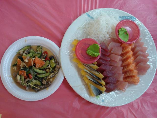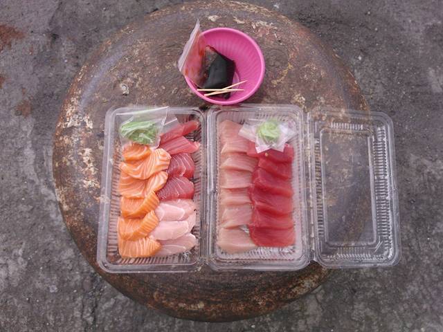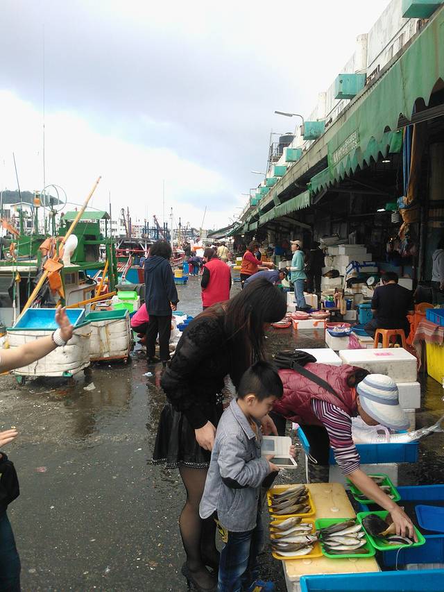 在之前,在先预定的名宿处借了自行车逛了逛苏澳港,不仅在饭店喝海鲜汤、还在集市场里买了盒生鱼片尝尝鲜。