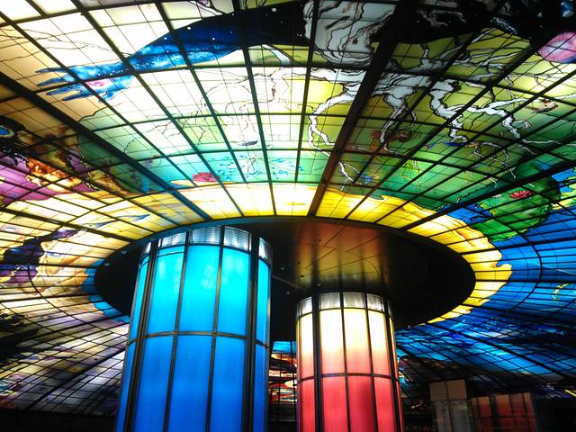 捷运“美丽岛”站的彩色苍穹在灯光下确实漂亮。