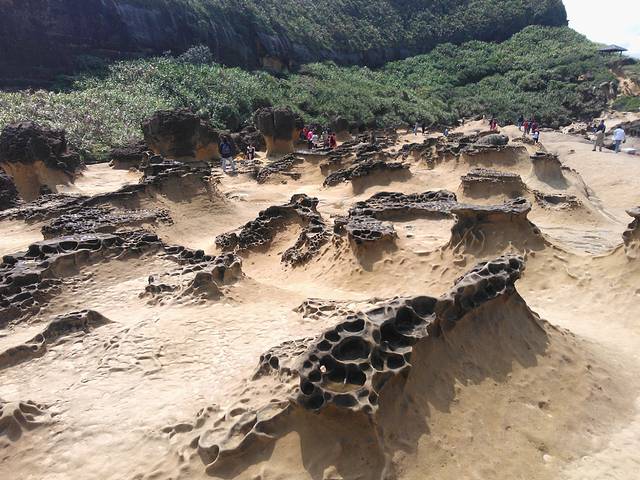 此公园是台湾特色,刷悠游卡入内,可观赏到许多坐经天然侵蚀风化形成的岩石造型。在公园前后两侧还能看到海景,但与后续行程到达的花莲、垦丁是无法比拟的,那里才是真正观海的地方。