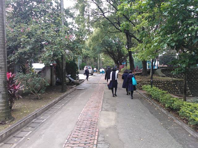 出“红毛城”后门,我们经过“真理大学”正门,步行没多久,特意去周杰伦以前就读过的“淡水中学”逗了一圈,只要出示“入台证”即可。
