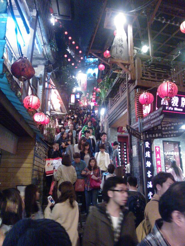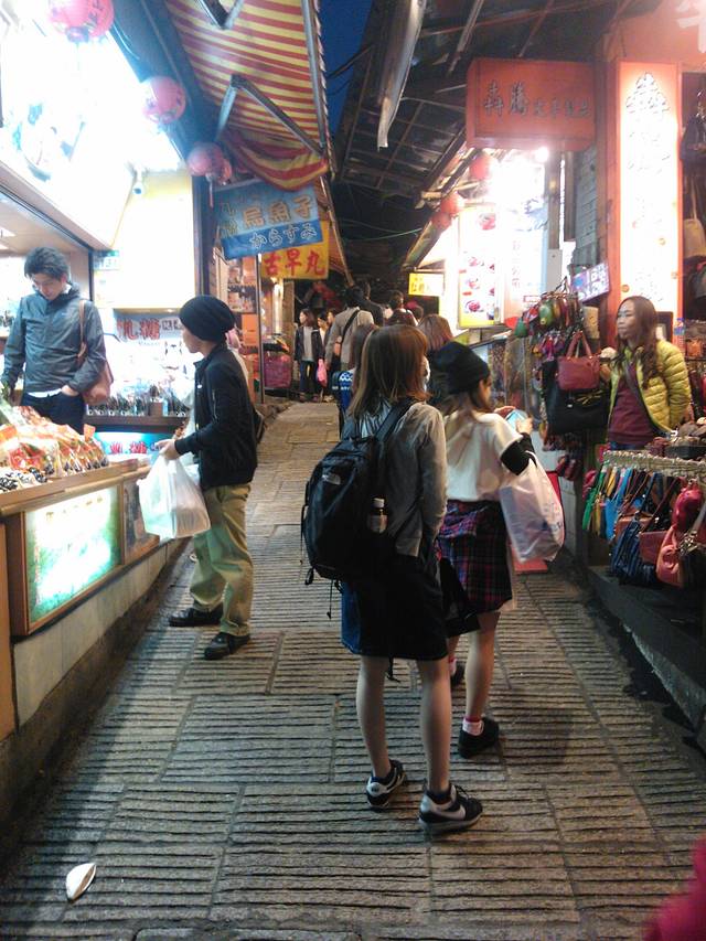 公车车站在瑞芳车站前方瑞芳派出所那里,等候的乘客蛮多的。想想没趣,蛮好在基隆车站那上车呢。好歹等来了788公车,时间不长到九份老街下。该车再往前是九份外景地“金瓜石”,可惜时间安排不过来没去成(八成是换乘浪费了时间,惭愧)。