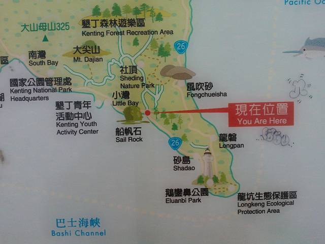 旅店管家几个年轻人,接待我们的H小姐蛮有耐心,反复为我们讲解旅游线路。按事先安排,我们此次在垦丁停留时间长达三天,足够安排玩耍的,所以事先并没刻意做攻略。