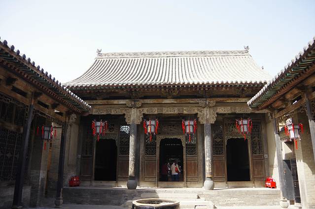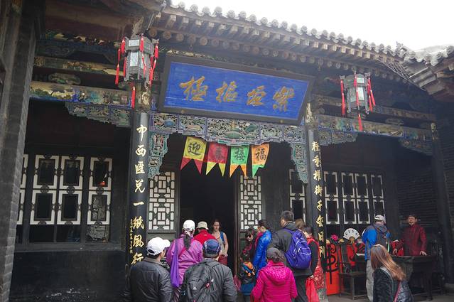 下午两点半左右到的王家大院,路上有一小段有些颠簸,不过我折腾了一早上,搓板路也拦不住我的睡眠。下车的时候基本上就已经满血了。王家大院是晋商时代的象征,里面雕梁画柱,大院建设的材质考究,做工精细,即使是我这样不懂艺术的人,也觉得这里头艺术的水很深。更难得的是,这里是中华文化匠心独具的体现,就好像规圆矩方的匾额中多的那一点,突如其来的愕然和浑然天成的即视感,让人赞叹不已。参观王家大院是从东门进的,本来想找个导游,可是同行的人没一个愿意拼导游的,反而觉得我是当地的骗子。。。无奈只好花十块钱租了一个讲解器,押金五十。说实话,讲解器好用是好用,就是语速太慢,要是赶时间的话还是导游好使。首先是视履堡,这里是灵石王家鼎盛时期的两位大人物修建的,据说是在康熙皇帝平定三藩的时候给军队供马,后来王家就沿着这条道路越走越高,直到道光之后才逐渐衰败,走在这里,心想着这么大的家业也与被败光的一天,古人说穷三富五还真是有对的时候。租讲解器的时候会有一张王家大院的导游图,规划的路线比较经济,我便是顺着这个导游图走下来的。院子基本上都差不多,都是一个小院,两三进的房子,二层的阁楼,前面是住人的地方,后面的高层是供奉祖先的地方。视履堡的西边是恒贞堡,虽然比视履堡大很多,不过质量也差一点。刚进门的渔樵耕读图我还是蛮喜欢的。恒贞堡上边的花园也比视履堡的小花园要大很多。想想当年晋商辉煌时,把赚的钱和攒下来的银子都运回来盖了这么大的家业留给子孙,而这种行为也是中华民族千百年来家族传统中重要的行动纲领,对与错我很难做出评价,但是个人是不赞成这种行为的。在这里我们看到了王家大院高楼起,也能想象的到他宴宾客,只是最终他的子孙们没有守住这份基业。(其实我也想到了另外的一个可能性,就是这里的后人不愿意让游客知道他们的来历,这个想法有点神经兮兮的,嘿嘿!!想一想就行了)