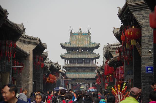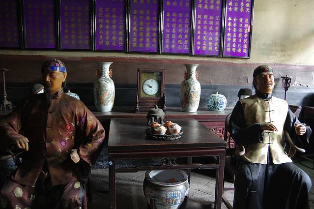 日升昌是整个平遥历史上最璀璨的明珠,虽然他在历史的长河中最终还是被银行体系湮灭,但是这是中国金融历史里不小的尝试和创举,听导游在这里一点一点的讲解票号的各种讲究和规矩,透露的各种各样人们揣测的票号的运营机制和暗语,突然觉得票号就好像一个在黑暗里摸索的人,逐渐的适应了黑暗而且总结出一套行之有效的行动方略,突然来到光明里,虽然睁开了眼睛,可是之前的行动方式却没有变,最终还是又回到了黑暗中。这一套套挑选人才,培养忠诚度,建立感情的终身学徒制度,不仅限制了票号的规模,也限制了人的发展,在当时不快就慢的环境下,被淘汰是早晚的事了。来这里的时候几乎不用找导游,在门口等一下,会有好多人带着导游进来。
