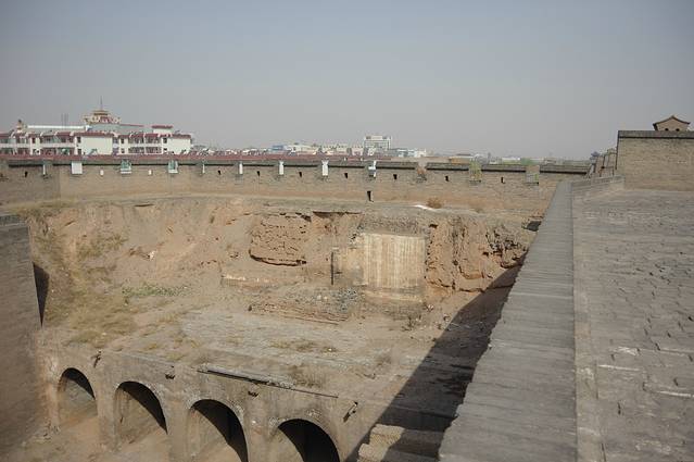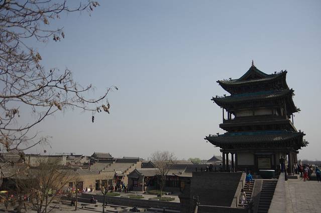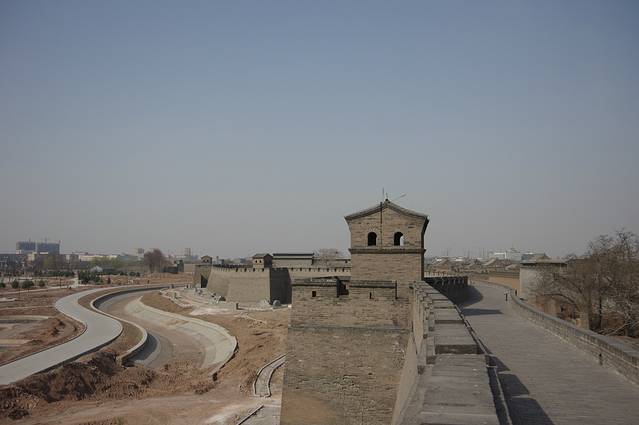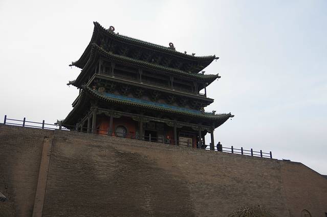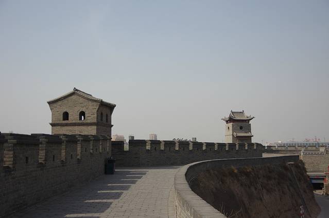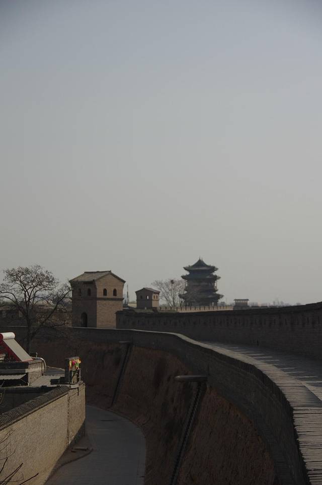 处了平遥文庙,往西走,没多远就看到平遥古城的南门,迎熏门,从这里可以上城墙。不过千万要注意,一定不要走太远,一会还得从南门这里下来。我就是不知道这个情况,一直往西走,本来想从永定门下就近就可以去雷履泰故居,可是永定门那里的楼梯口不开,无奈之下又走了好长一段路到西边的凤仪门才下来,算下来要多走两三公里才能回到雷履泰故居。说说平遥的古城墙吧,72个塔楼3000个垛口,说的是孔子老先生的72个贤人和3000名弟子,也算是一种致敬吧。城墙周长6.4千米,外高内矮,目测外墙高度大概在十几米左右,说是神龟八卦图,不过我一直没看出那个神龟的模样。城墙宽约四五米的样子,想想从前城市的攻防,需要的仅仅是这么十几米高的城墙,真是有些好奇这偌大的城池是怎么防守的。尤其到了热兵器时代,这座古城居然还是完整的保存了下来,不得不说是一个奇迹。