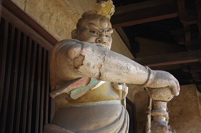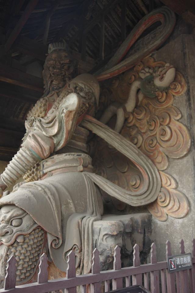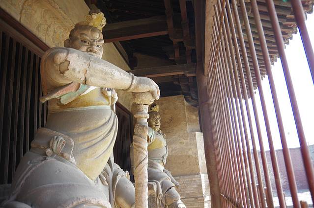 镇国寺是一个以木工见长的寺庙,这里真的真的就来了我一个游客,门票24,真心后悔为了省二十块钱和节省时间,没有请导游讲解。木工咱不懂啊%>_<%,建筑玄学咱不知道啊%>_<%,看来以后去哪儿玩,还是需要恶补一下这方面的知识。镇国寺一听名字就是官办的寺庙,里面的佛像宝相森严,不像刚刚看过的双林寺那么富有想象力,因为赶时间又看不懂,只好留着遗憾等我学习点建筑学的知识之后再来了。