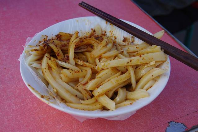 刀削面就不用说了,作为西北人的我对面几乎没什么抵抗能力,平遥的醋真的好棒,倒出来粘糊糊的,吃起来贼香,牛肉有味道还筋道。碗坨子我吃了两次,口感不赖,还有一点家乡的感觉。还有一点我比较喜欢的是这里很少看到什么来自台湾或者日本的小吃,让人舒服多了。一想到济南芙蓉街上把子肉都找不到,我那个心寒啊。