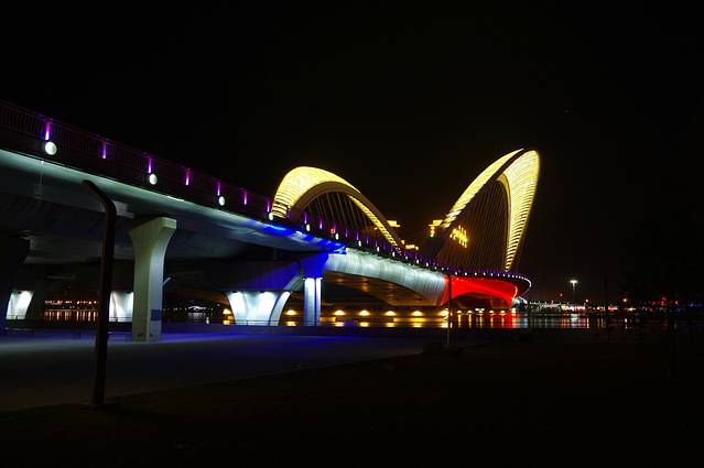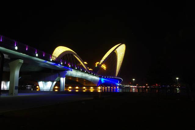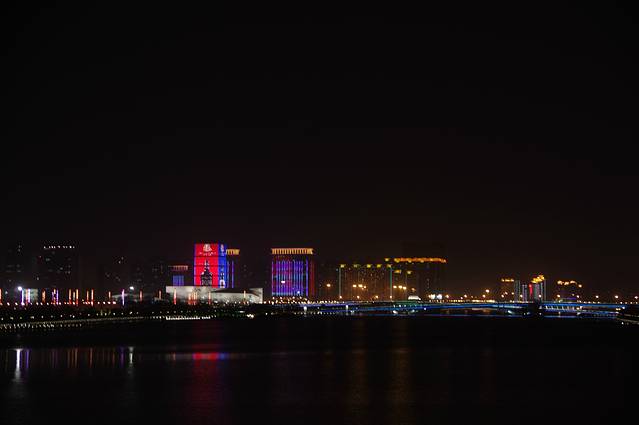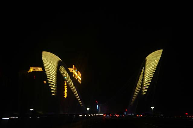从面馆出来,就急急忙忙打车去下一个目的地,南中街桥。走了这好几里的路就是因为想要看一眼这座大桥。可是拦到的出租车师傅都不愿意去,原来这里上了大桥之后没办法再拉活了。后来我跟师傅商量,说在桥上可以停车的地方开双闪等我,我去下面的滨河公园拍了照片再回来,可以先把前半程的钱给他,其实我到这里也就十块钱,我给了二十让师傅等我。以前也这么干过,可有的地方碰到了好人,有的地方碰到了不好的人。哈哈。下去抓紧时间撑开三脚架拍了几张照片,回去看的时候,出租车师傅还是不慌不忙的在等,因为订的青旅是晚上八点到,给老板打了个电话说晚点到,老板很爽快的就同意了。别怪我放了太多这座桥的照片,真是太喜欢了。