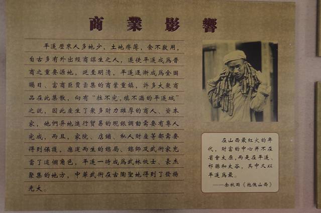 经过痛苦的回头路,我最终来到了雷履泰故居这里在旅游地图上仅仅标了一个点,不算是重点旅游区,因此来这里的人非常少,半天了也就我跟几个游客从这里走过。可是这里曾经住着以“汇通天下”而为名于世的山西票号的创始人,雷履泰。个人故事不多赘述,这里主要是一个大人物的起居住所,还有雷履泰先生创建日升昌票号的过程,以及他的一些个人事迹。这里从另外一个角度讲述了一个山西商人的人生之路,同时也讲述了山西晋商之间的恩恩怨怨。来这里看了雷履泰故居,之后去日升昌看票号就容易理解多了,所以这里还是值得看看的。