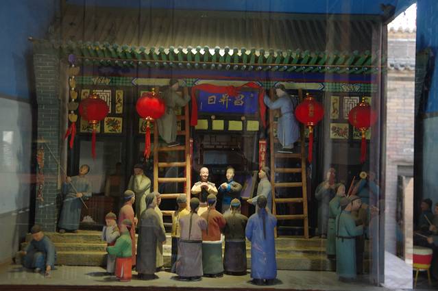 最后一站是清虚观,这里听起来不是很有名但是历史悠久,始建于唐朝,之所以重要的另外一个原因是这里是平遥县城的博物馆,很多文物和历史的记录都放在这里。中轴线上市道教文化,二两侧厢房里则是平遥的历史。东北角的厢房里有木雕,稍微有些可怕,东边厢房里有好多小箱子里装的小剧场,非常精致,讲述了很多历史故事,看着蛮有趣的。