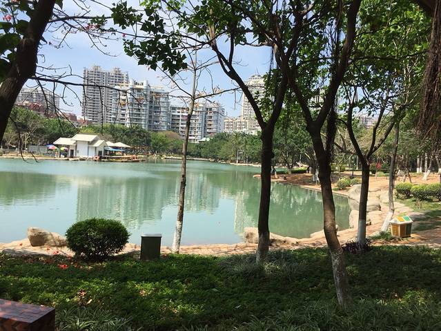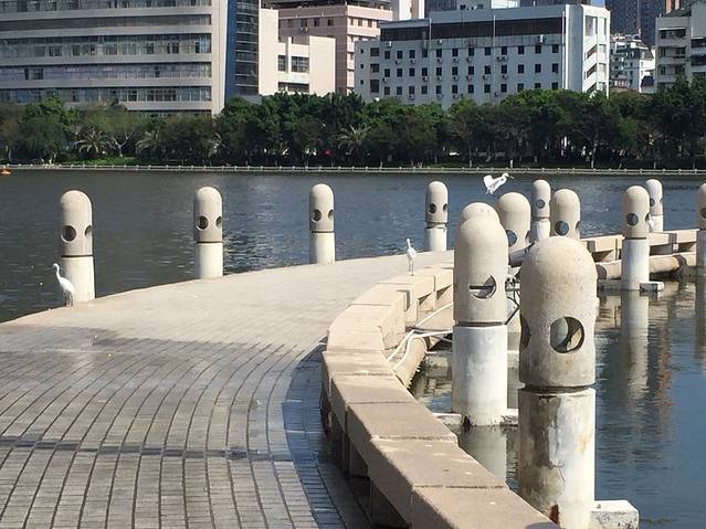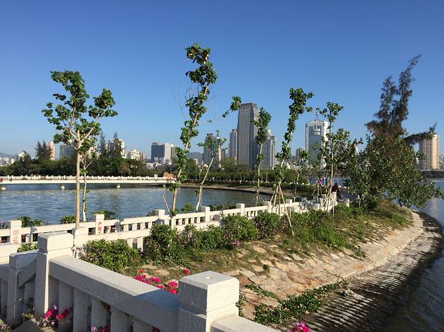 海湾公园在白鹭洲公园旁边,建议从白鹭洲到咖啡别墅一条街再到这里,从咖啡一条街尽头走小路过湖,小路是花桥的感觉,姹紫嫣红很漂亮。尤其阳光照射下,湖面当真是波光粼粼。