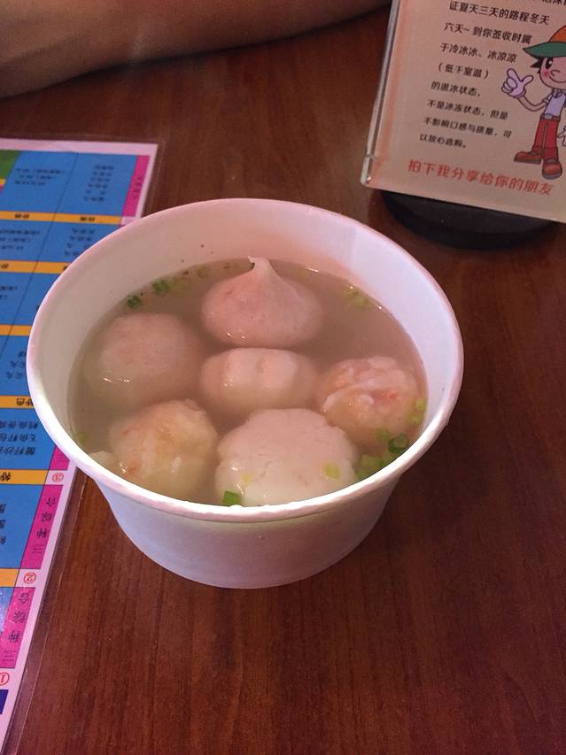 4、邵子牙贡丸。店铺可以盖章,味道真挺不错,推荐蟹籽仙桃和芝士丸,但丸子汤底胡椒粉味太重。